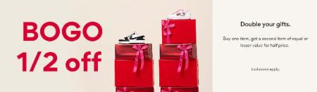 Hurry in and buy one item, get a second item of equal or lesser value for half price in store.
